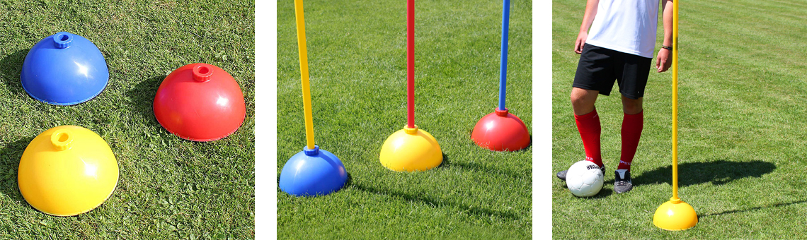 > Mit den Kombi-Rundfüßen lassen sich interessante Slalom- & Hürdenübungen aufbauen