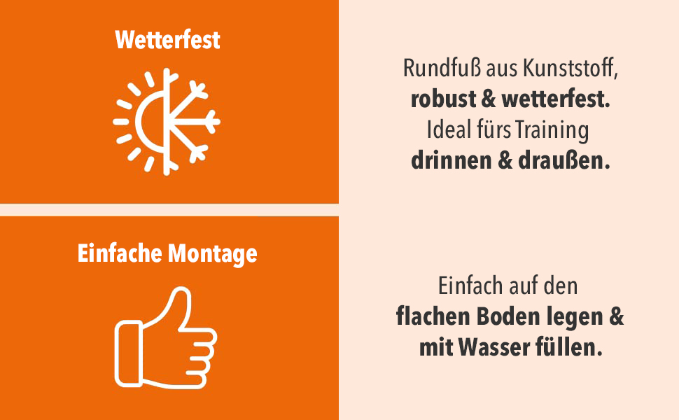 > Der Rundfuß wird z.B. mit Sand gefüllt und garantiert so einen sicheren Stand