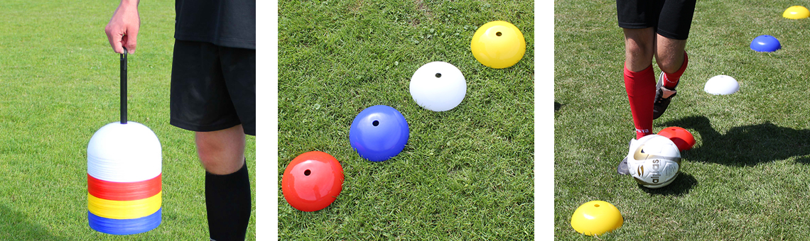 > Zum Markieren von Spielfeldern, Anlaufpunkten, Slalomparcours etc.