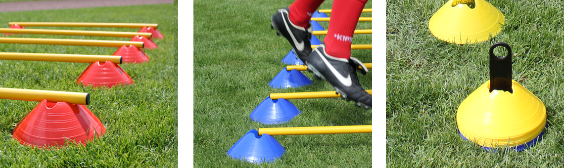 5 MINI-HÜRDEN MIT MARKIERTELLERN & STANGEN 100 CM, INLUSIVE TRAGEHALTER